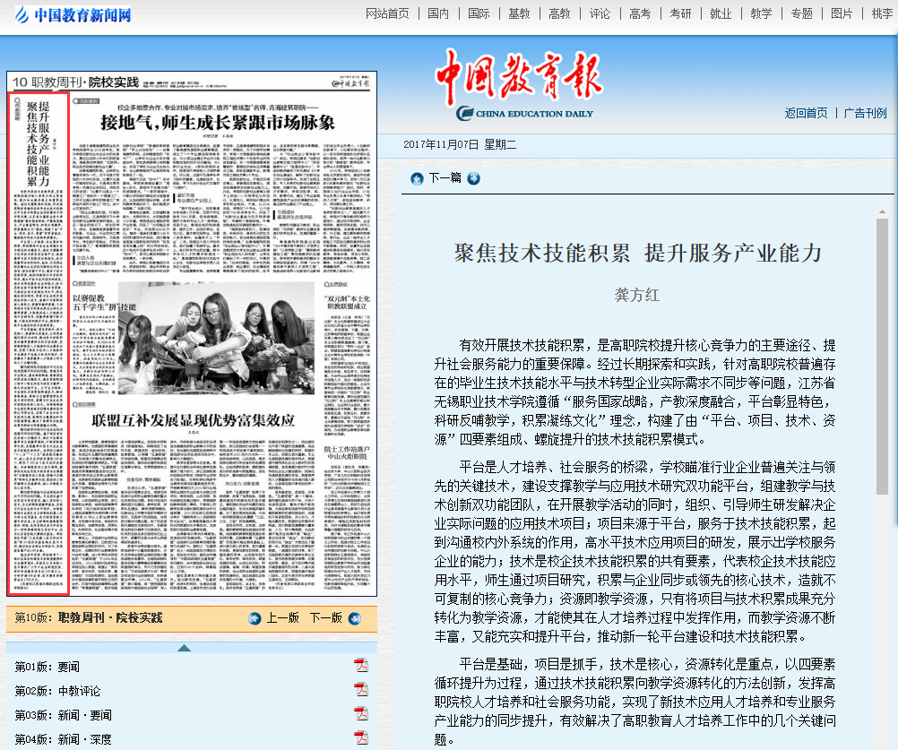 【中国教育报】聚焦技术技能积累 提升服务产业能力