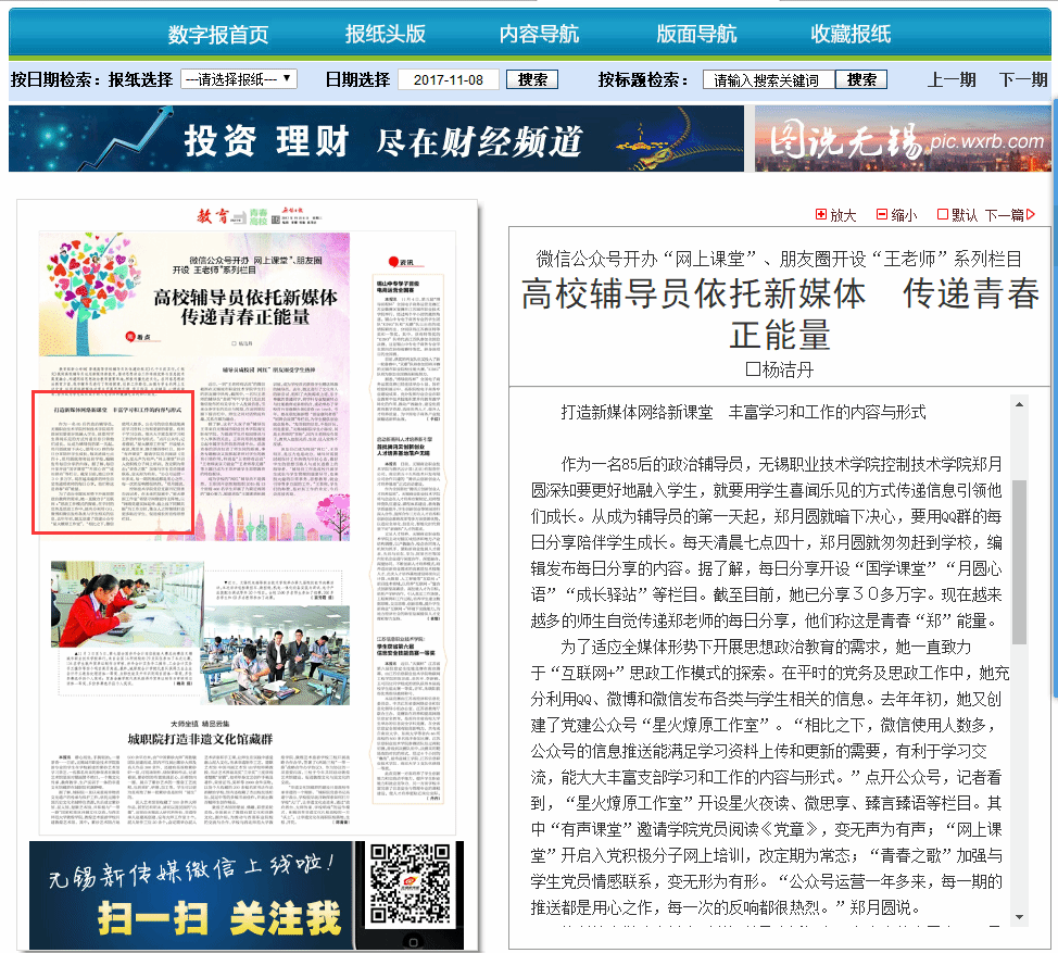 【无锡日报】高校辅导员依托新媒体 传递青春正能量