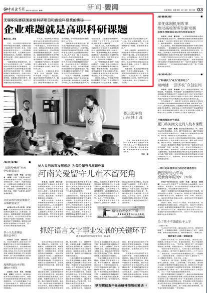 2014年,无锡职院提出“教学、科研‘两条腿’发展,科研也撑‘半边天’”的主张,通过引进和培养高层次人才、鼓励专业教师参与企业科技开发、出台《科研考核奖励办法》等一系列措施,为科研发展提供机制保障和人才支持。