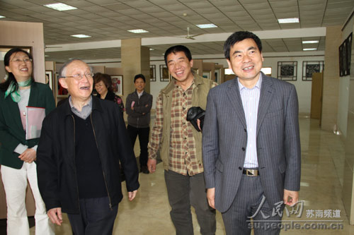 杨叔子院士(左)参观艺术系学生作品
