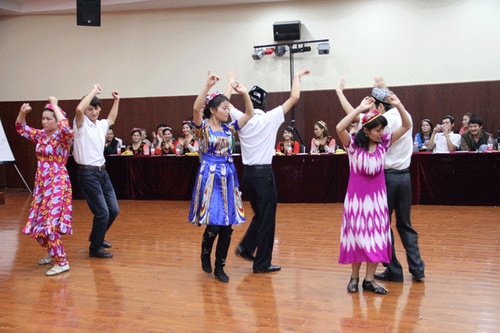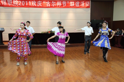 今年,无锡职院先后迎来了30名“民考民”新疆少数民族学生和29名新疆高校毕业生适岗培训班学员。为让远离家乡的新疆少数民族学生和学员在锡欢度古尔邦节,该校举办了这次活动。学校有关领导及教师和新疆同学共庆节日,副院长华坚还在活动中致辞,向新疆少数民族师生表达节日的祝贺。接着,新疆少数民族师生尽情表演了《美丽的维吾尔姑娘》、《沙玛瓦尔》、《古尔邦节颂》、《我向往春天》等具有民族特色的歌舞、朗诵、弹唱节目。部分汉族师生也为新疆少数民族同学表演了歌曲、书法、绘画。活动现场洋溢着和谐欢快的气氛,让首次来锡求学的新疆少数民族同学感受到了学校的温暖。