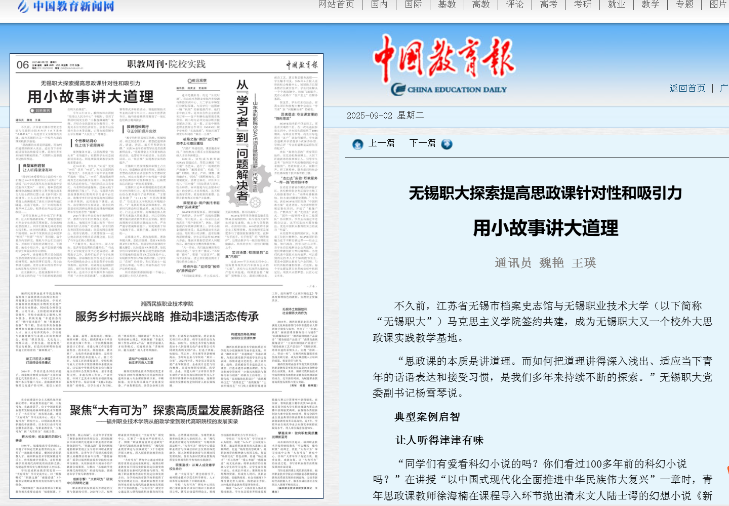 【中国教育报】用小故事讲大道理——无锡职大探索提高思政课针对性和吸引力