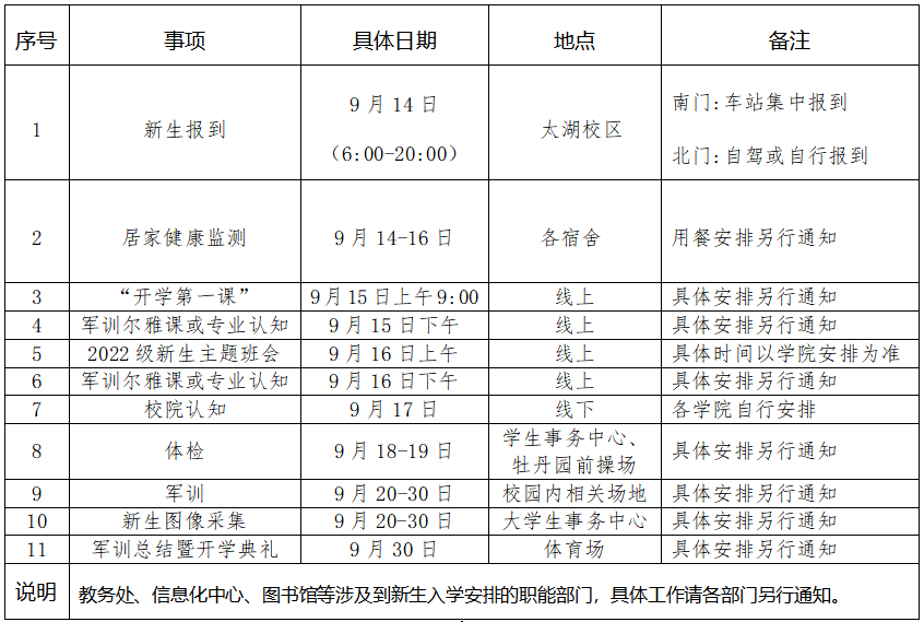 2022级新生报到及入学工作安排表