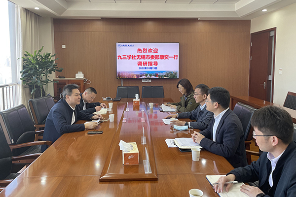 10月19日上午,九三学社无锡市委专职副主委兼秘书长邵康奕一行2人到我校考察调研九三学社乐鱼注册_乐鱼(中国)支社建设工作。校党委书记龚方红,统战部部长朱翔,校办副主任程继明,九三学社乐鱼注册_乐鱼(中国)支社主委杨丽等相关人员参加座谈会。