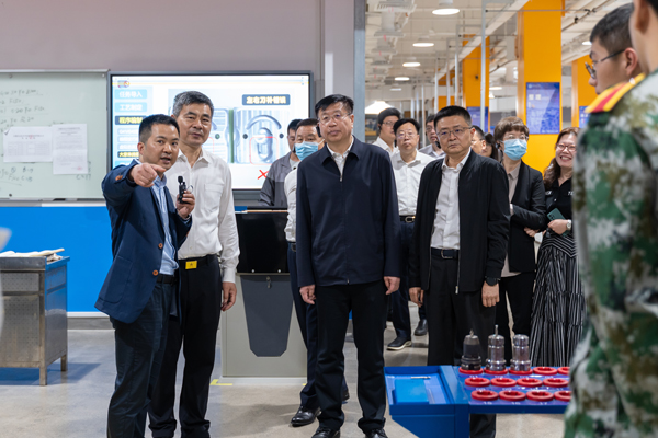 江苏省教育厅副厅长曹玉梅、职教处处长徐庆,无锡市政府副市长秦咏薪、市政府办公室副主任郭平及市教育局、市发展改革委、财政局、人力资源社会保障局相关领导和负责同志陪同调研。我校领导朱爱胜、龚方红、吴慧媛及党办校办、党委宣传部、学生处、智能制造工程中心、机械技术学院、汽车与交通学院等相关职能部门和学院负责人接待了考察团。龚方红校长介绍学校办学总体情况,特别是近年来围绕智能制造产业发展开展人才培养、校企合作、社会服务等方面采取的措施和取得成效。