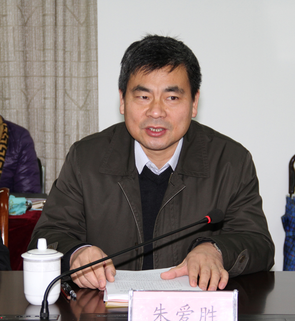 校党委书记朱爱胜汇报我校教育实践活动情况