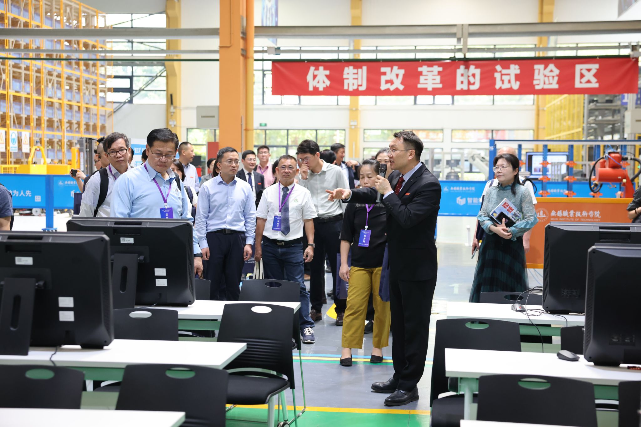 考察团一行还参观了学校难加工材料切削与装备应用实验室等省级工程研究中心和研究生工作站,机械工程学院王骏院长通过对近年来教师科研应用和校企合作情况的讲解,介绍了实验室建设发展的重要历程,并展示了学生工程实训中心的教学单元和运行管理。在智能制造技术研究院,刘全胜院长向考察团进一步介绍了学校产、学、研、用深度融合教学模式及办学成果,生动展示了职业教育区域化发展的特点和优势。