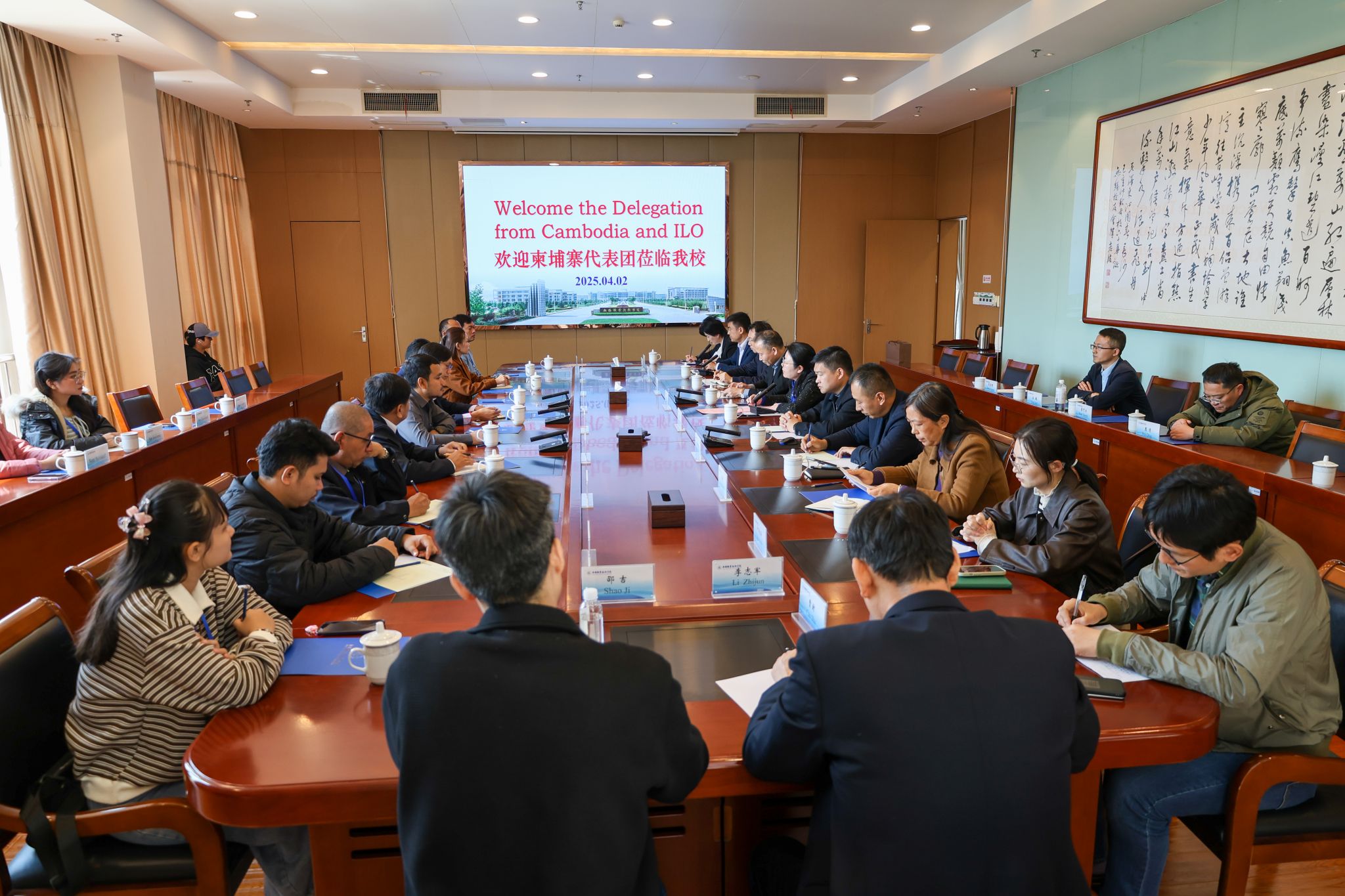 4月2日,柬埔寨劳工部、国际劳工组织中国合作计划项目组、中柬友谊理工学院、柬埔寨国家技术培训学院一行14人来校交流职业技能培训和鉴定标准。副校长吴慧媛,继续教育与培训部、国际交流合作处、机械工程学院、汽车与交通工程学院、文旅学院、智能制造技术研究院等部门相关负责人参加交流。