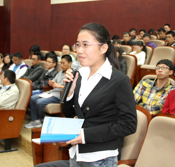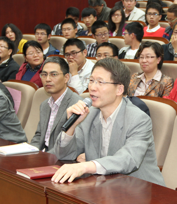 报告结束后,思政部教师宋瑞超、控制技术学院2014届毕业生袁贝、正院级调研员戴勇教授先后就我校师生关心的问题向黄莉新书记进行了提问,黄书记精彩的回答赢得满堂掌声。(活动办)