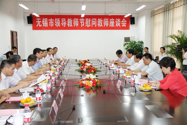 今年9月10日是第28个教师节,上午9点,无锡市委副书记、市长朱克江,市政协副主席章一中,市政府秘书长吴峰枫、副秘书长唐喜泉和市委教育工委副书记王珍珍等领导一行来到我校太湖校区,带来了市委市政府对我校教职工的节日问候。